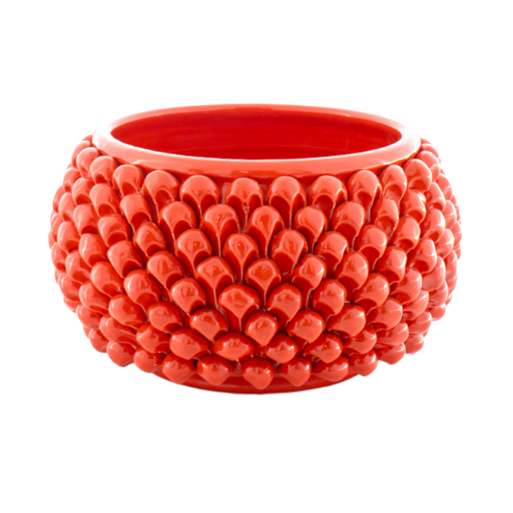 Il cachepot in ceramica L Rosso Corallo illumina gli spazi con un colore caldo e vibrante, perfetto per ravvivare angoli decorativi della casa. Realizzato artigianalmente, ogni pezzo garantisce unicità e qualità . Ispirato alla pigna siciliana, è ideale come vaso per piante dal carattere siciliano.