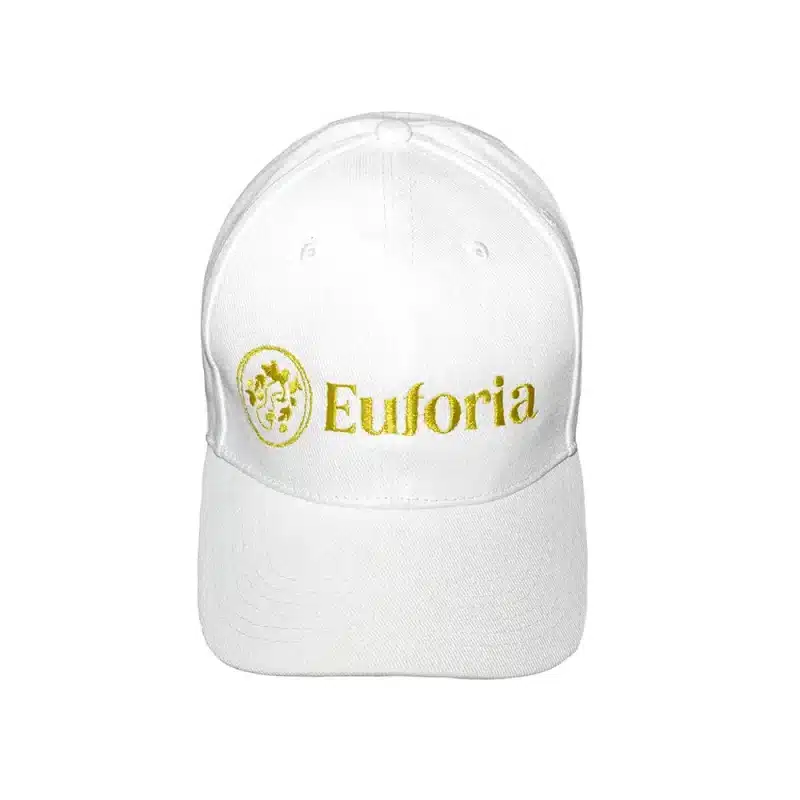 Completa il tuo look estivo con il cappellino bianco e oro Euforia, realizzato in tessuto leggero con raffinato ricamo dorato. Perfetto per passeggiate, eventi informali o per dare un tocco di originalità al tuo outfit quotidiano. Traspirante, pratico e confortevole, grazie alla sua visiera curvata e al tessuto 100% cotone, unisce eleganza e funzionalità per le giornate di sole.