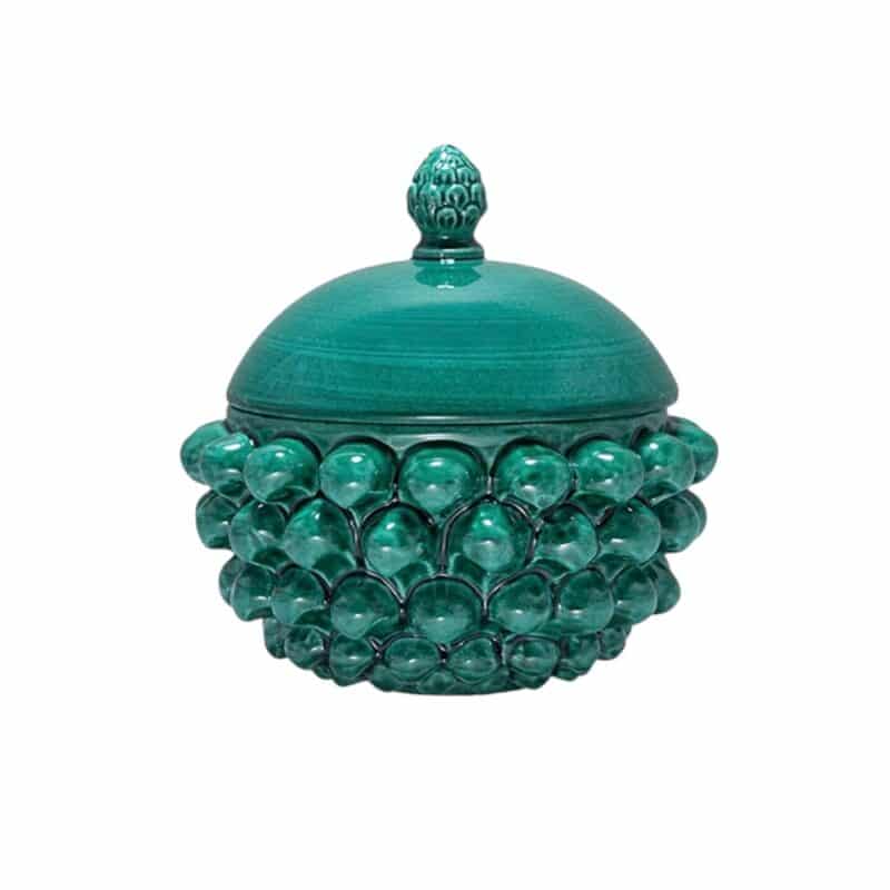 I nostri centrotavola con coperchio in ceramica di Caltagirone Verde Siciliano S sono un esempio perfetto di fusione tra tradizione e modernità .
