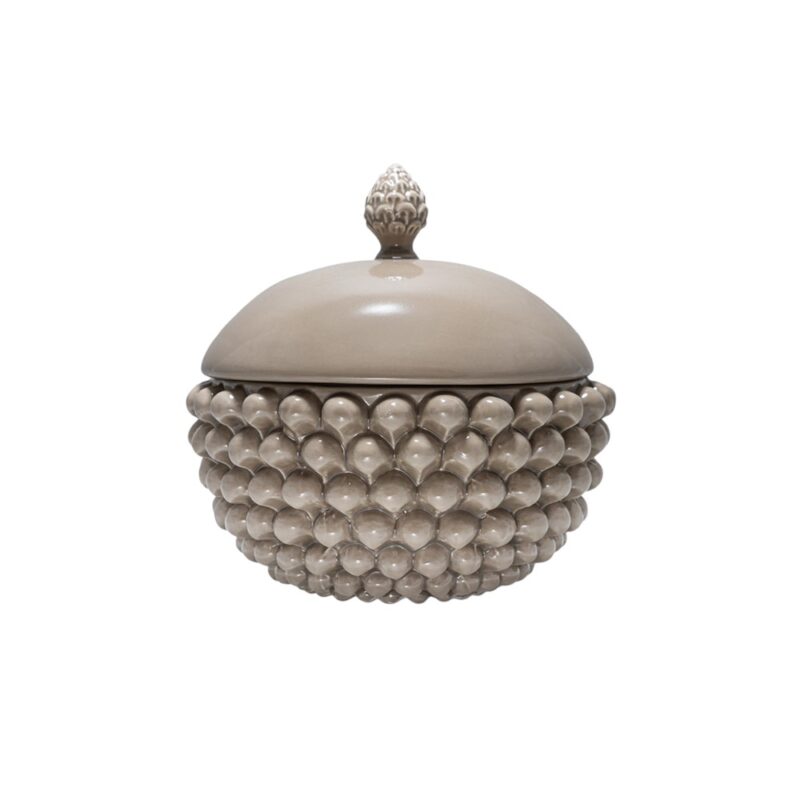 I nostri centrotavola con coperchio in ceramica di Caltagirone Tortora Sabbiato M sono un esempio perfetto di fusione tra tradizione e modernità .