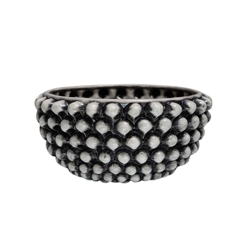 Il centrotavola in ceramica M in grigio fumé dona carattere moderno e discreto con una tonalità elegante. Lavorato artigianalmente a mano, si distingue per il suo stile pulito e per le sue forme che richiamato il design della pigna siciliana. Perfetto per arredare ambienti contemporanei.