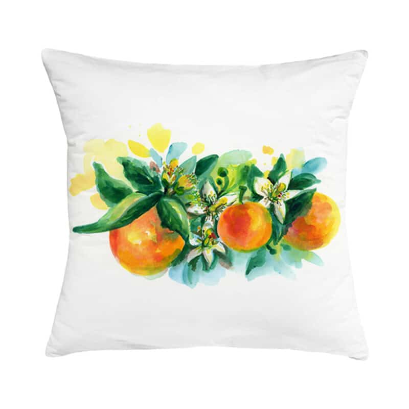 Il Cuscino Arance in Fiore coniuga la morbidezza del cotone con la vivacità dei colori, perfetti per arredare la tua casa con eleganza e originalità .