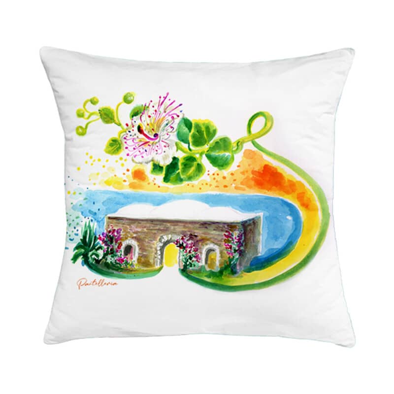 Il cuscino Dammuso Flower è realizzato con materiali di alta qualità , coniugando la morbidezza del cotone con la vivacità dei colori.