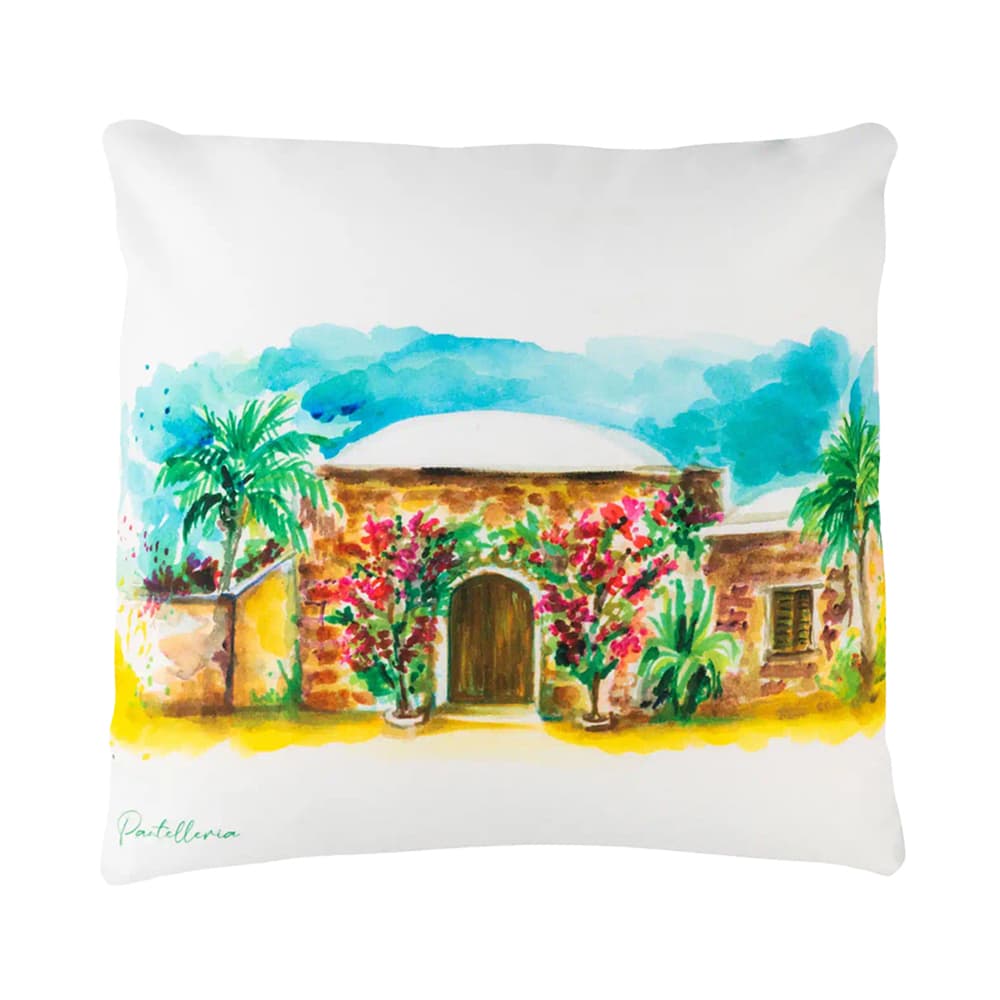 Rinfresca il tuo arredamento con il Cuscino Dammuso Palme in velluto morbido e pregiato. Il suo motivo con palme ispirato ai dammusi di Pantelleria dona un tocco esotico e raffinato a soggiorni e camere da letto. Sfoderabile e lavabile, combina stile, praticità e qualità per un arredo elegante e senza tempo.