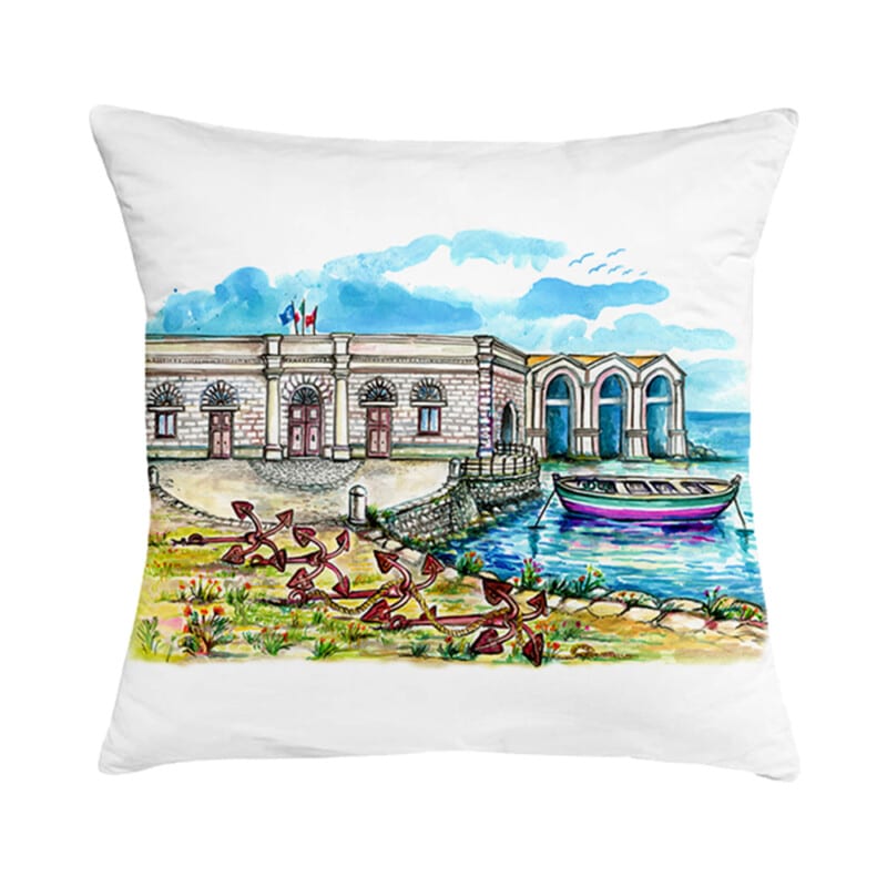 Il Cuscino Tonnara coniuga la morbidezza del cotone con la vivacità dei colori. Ogni disegno, che ritrae paesaggi naturali o elementi caratteristici della Sicilia, cattura un messaggio di autenticità e tradizione.