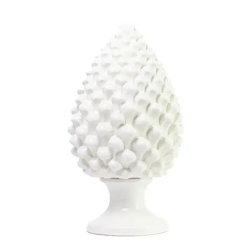 La pigna Bianco Puro in argilla bianca alta 40 cm, è il simbolo per eccellenza dell’eleganza artigianale. Lavorata a mano a Caltagirone. Perfetta per esposizioni, eventi o come dono di grande valore dove tradizione e innovazione si sposano in un connubio perfetto.