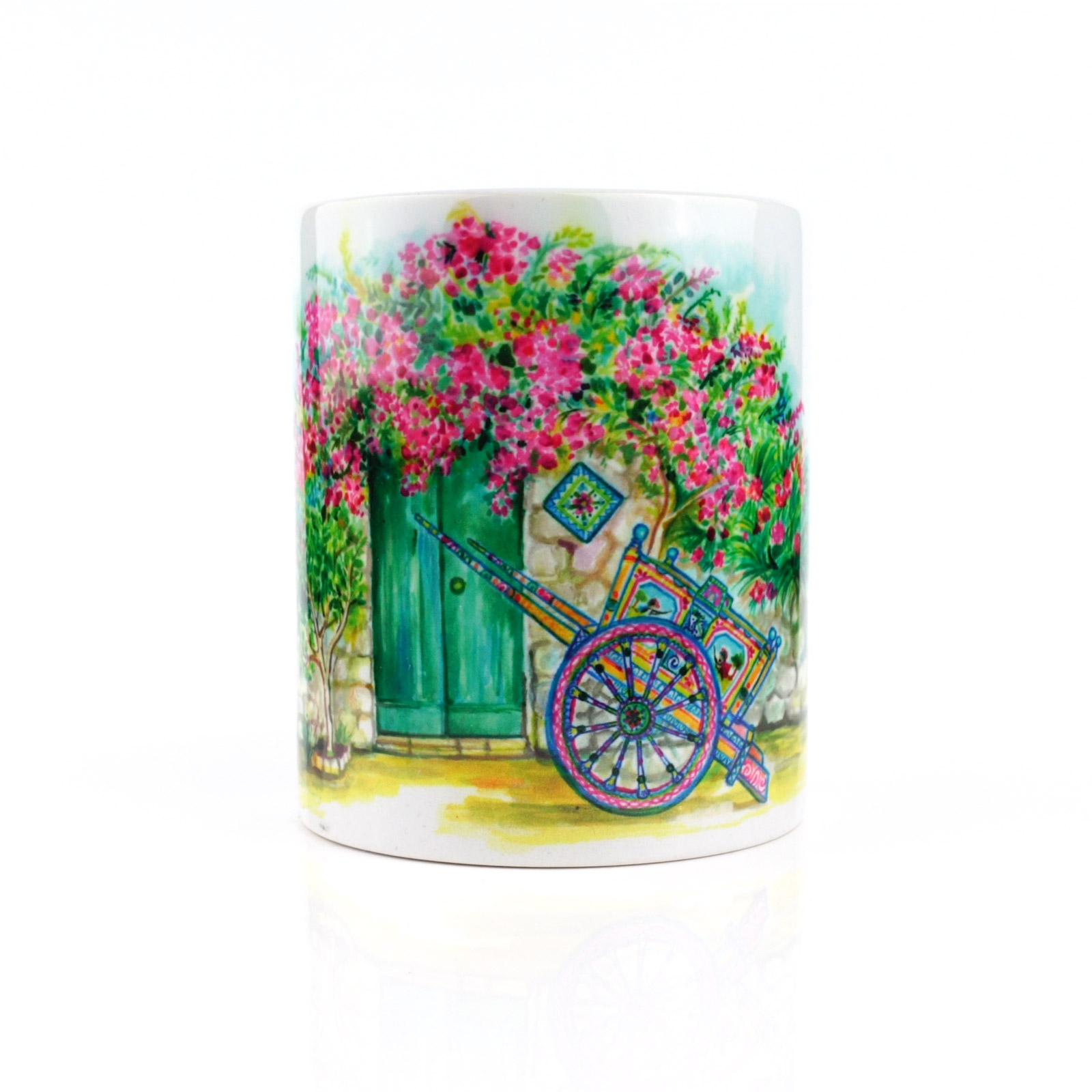 Porta il fascino della Sicilia sulla tua tavola con la nostra tazza in ceramica lucida.