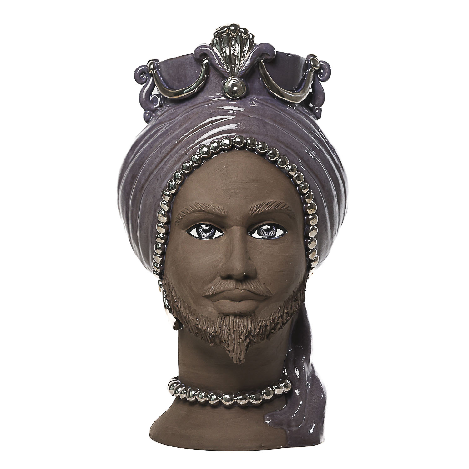 Immergiti nell’eleganza e nella storia con la nostra Testa di Moro Acamante: un’autentica opera d’arte realizzata a mano dai nostri maestri artigiani a Caltagirone. Questa particolare testa in argilla nera, alta 43 cm, grazie al turbante colore ametista e ai dettagli in platino, aggiunge un tocco di lusso e prestigio a qualsiasi ambiente.