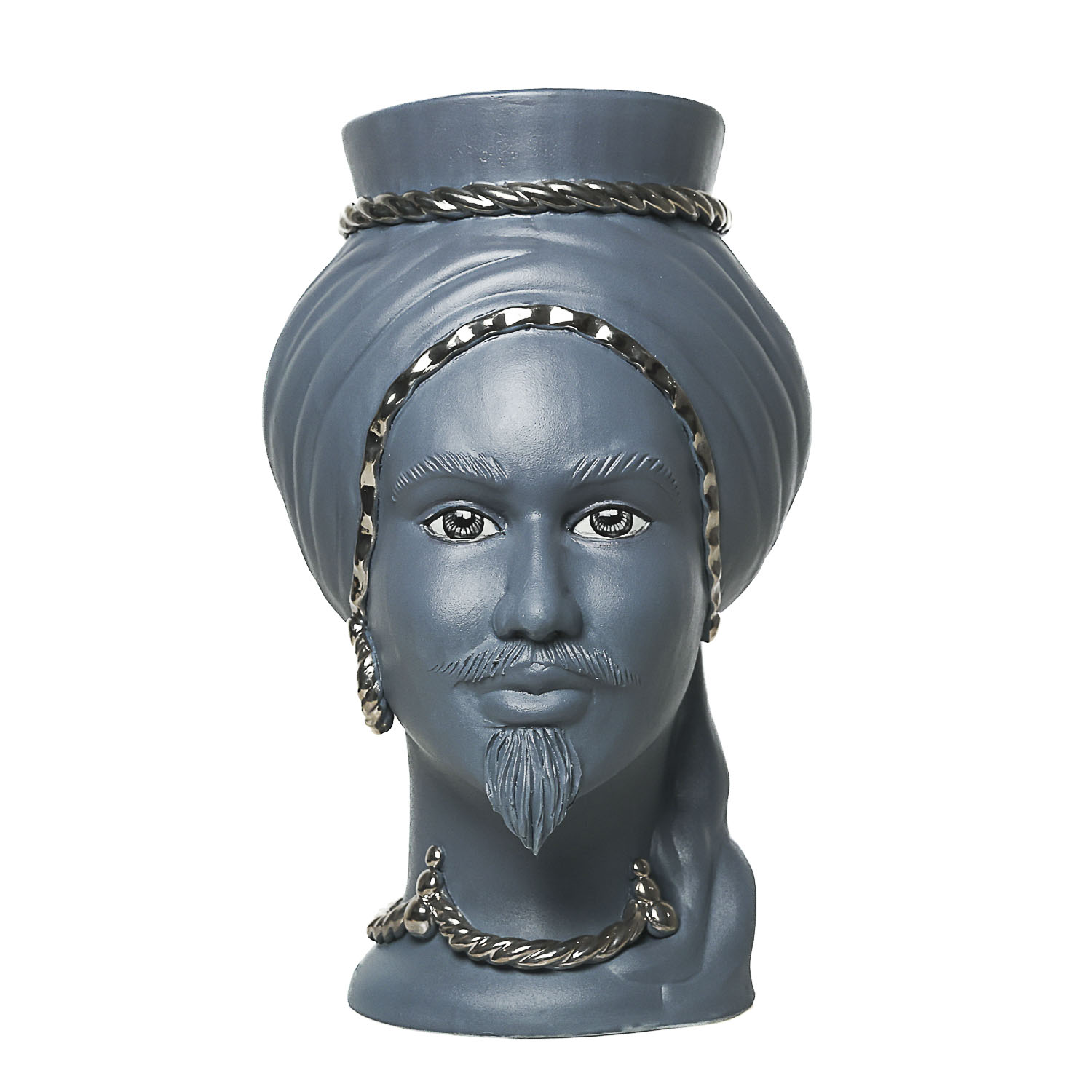Immergiti nell’eleganza e nella storia con la nostra Testa di Moro Endimione: un’autentica opera d’arte realizzata a mano dai nostri maestri artigiani a Caltagirone. Questa particolare testa in argilla bianca, alta 43 cm, grazie al suo colore avion materico e ai dettagli in platino, aggiunge un tocco di lusso e prestigio a qualsiasi ambiente.
