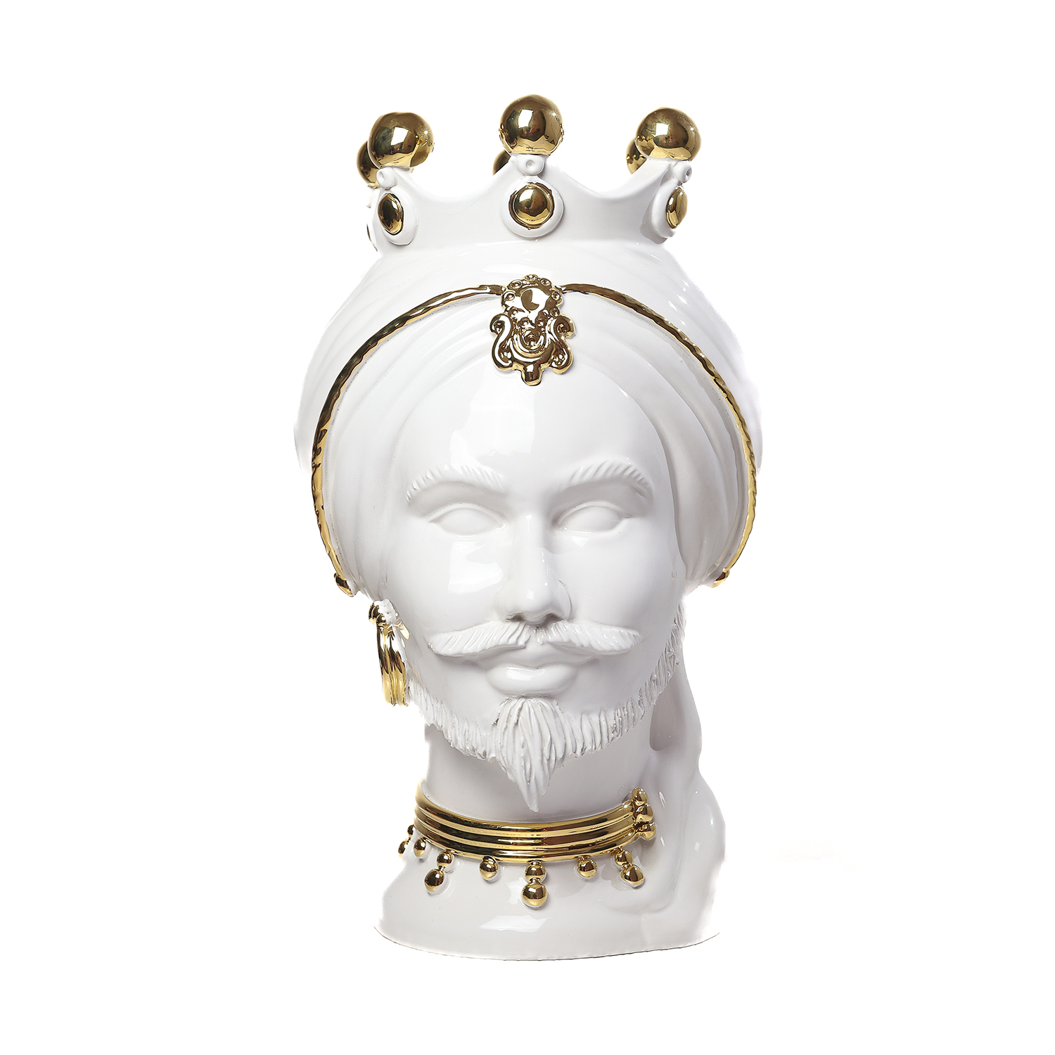 La Testa di Moro Eros Bianco e Oro รจ modellata e rifinita a mano dai maestri ceramisti di Caltagirone, in autentica argilla bianca. I dettagli preziosi in oroย esaltano la sua eleganza, rendendo ogni pezzo unico. Simbolo iconico della tradizione siciliana, porta storia, fascino e artigianalitร in ogni ambiente. Perfetta per arredare con stile interni moderni o classici.