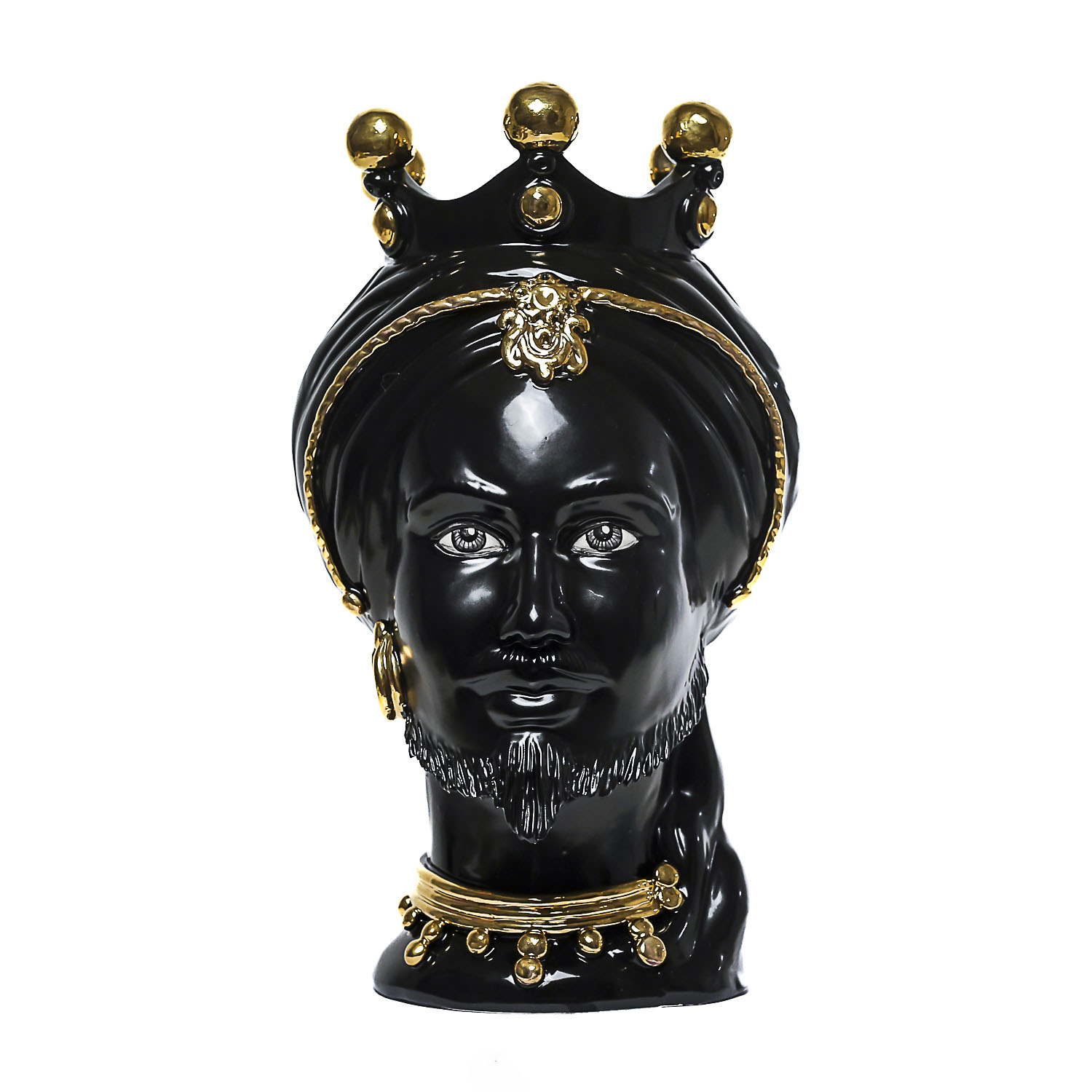 La Testa di Moro Eros Nero e Oro รจ unโopera dโarte in ceramica, modellata e rifinita a mano dai maestri di Caltagirone. La combinazione di nero e dettagli in oro dona maestositร e carattere, rendendo ogni pezzo unico. Simbolo iconico della Sicilia, unisce leggenda, storia e artigianalitร in un complemento dโarredo elegante. Ideale per arredare ambienti moderni o classici.