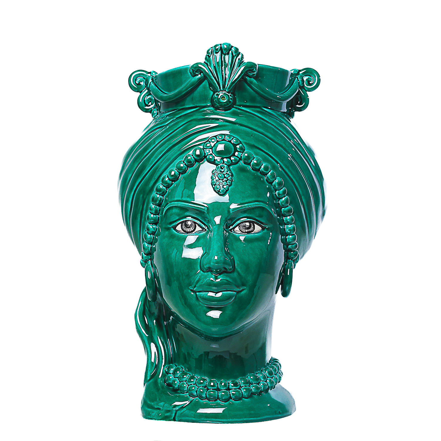 La Testa di Moro Tisbe L in Verde Siciliano, รจ modellata a mano dai maestri ceramisti di Caltagirone in autentica argilla bianca. Il raffinato colore esalta le sue forme armoniose, donandole unโeleganza contemporanea,ย ricca di fascino. Anche gli occhi sono dipinti a mano con cura. Perfetta per valorizzare ambienti moderni con un tocco di storia, tradizione e stile.