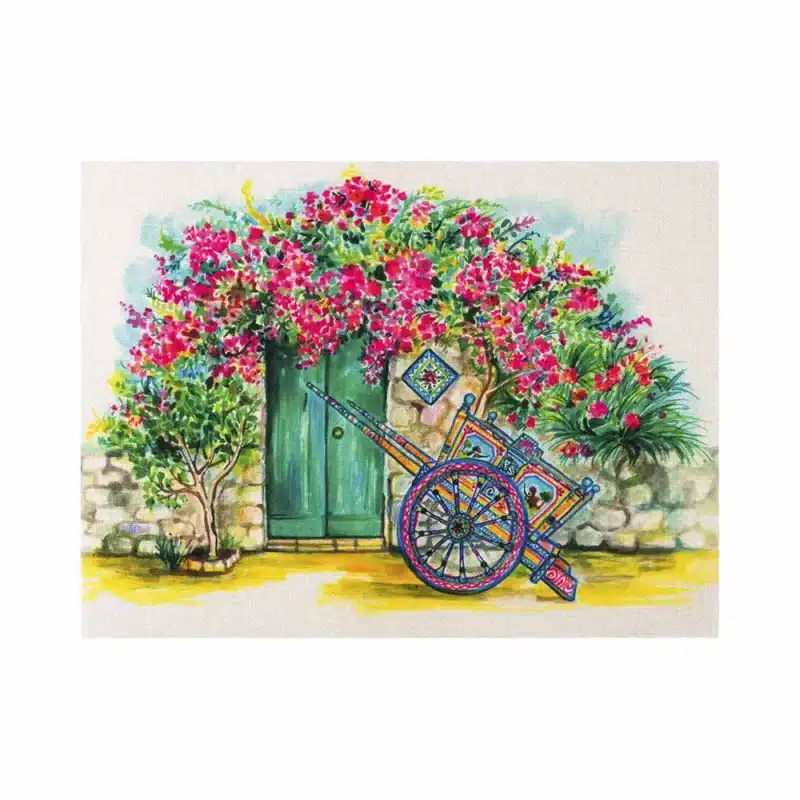La Tovaglietta Baglio Fiorito combina natura e tradizione con un design ispirato ai paesaggi fioriti della cultura siciliana. Realizzata in tessuto lavabile, è perfetta per la tavola quotidiana. Un complemento elegante per un set tavola mediterraneo.