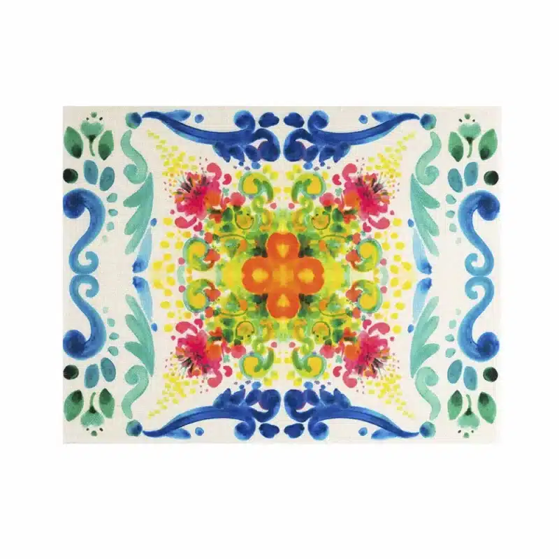 La Tovaglietta Maiolica Fantasy dona alla tavola un’esplosione di colori e geometrie ispirate alle tradizionali maioliche mediterranee, reinterpretate in chiave moderna. Realizzata in tessuto resistente, è lavabile e facile da pulire, ideale per un utilizzo quotidiano pratico e stiloso.
